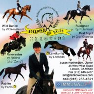 Wild Dance was the Champion of his Stallion Performance Test in Germany with a dressage index of 147.57. He also received a 9 for jumping. Wild Dance’s sire, Wolkenstein II, was also Champion of his performance test and known as one of Weltmeyer’s best producing sons with 46 licensed sons of his own. Wild Dance’s dam, States Premium mare Milva, by Matcho x, has Gotthard and Abhang III on her maternal side. This nick created many upper-level dressage competitors, top producing mares, licensed stallions, and has proven to be exceptional. Wild Dance qualified for the Bundeschampionat and placed fourth in the finals. He is an accomplished international competitor, winner of six Grand Prixs and many placings in Europe. In 2005, he was Reserve Champion at the Neurenberger Burg Pokal Finals with Hubertus Schmidt. They showed in this prestigious German show circuit with the highest qualifying scores of any competitor that year, routinely scoring over 75%. Wolkenstein II produces great rideability, gaits, conformation and type as witnessed by his high breed values in those areas. Wild Dance passes on type, quality gaits, exceptional temperament and willingness to work which result in typey high-performance offspring. In 2011, Wild Dance had less than 50 offspring because of his owner’s focus on performance. Yet, with only 24 offspring in competition, 10 had successes and four are placing at the Grand Prix Level. At only seven years old, Will Be already placed at Grand Prix, and by 2011 had 43 placings and nine victories. Seven mares sired by Wild Dance became States Premium mares in Germany. In 2007, he produced Windsor VT, the highest-scoring Premium colt on the entire Oldenburg N.A. tour, and Reserve Champion at Devon. Deyonce (Wild Dance/Contucci) became one of only three Swedish Diploma mares in the U.S. and Wild Gambol HU became an EMC and won the Five-year-old Future Dressage Horse class at Devon in 2012. Wruby Noon HU was the 2015 nationwide AHS Two-Year-Old Futurity Champion. Sunsprite’s Watusi was the 2017 USEA Young Event Horse West Coast Four-Year-Old Champion.